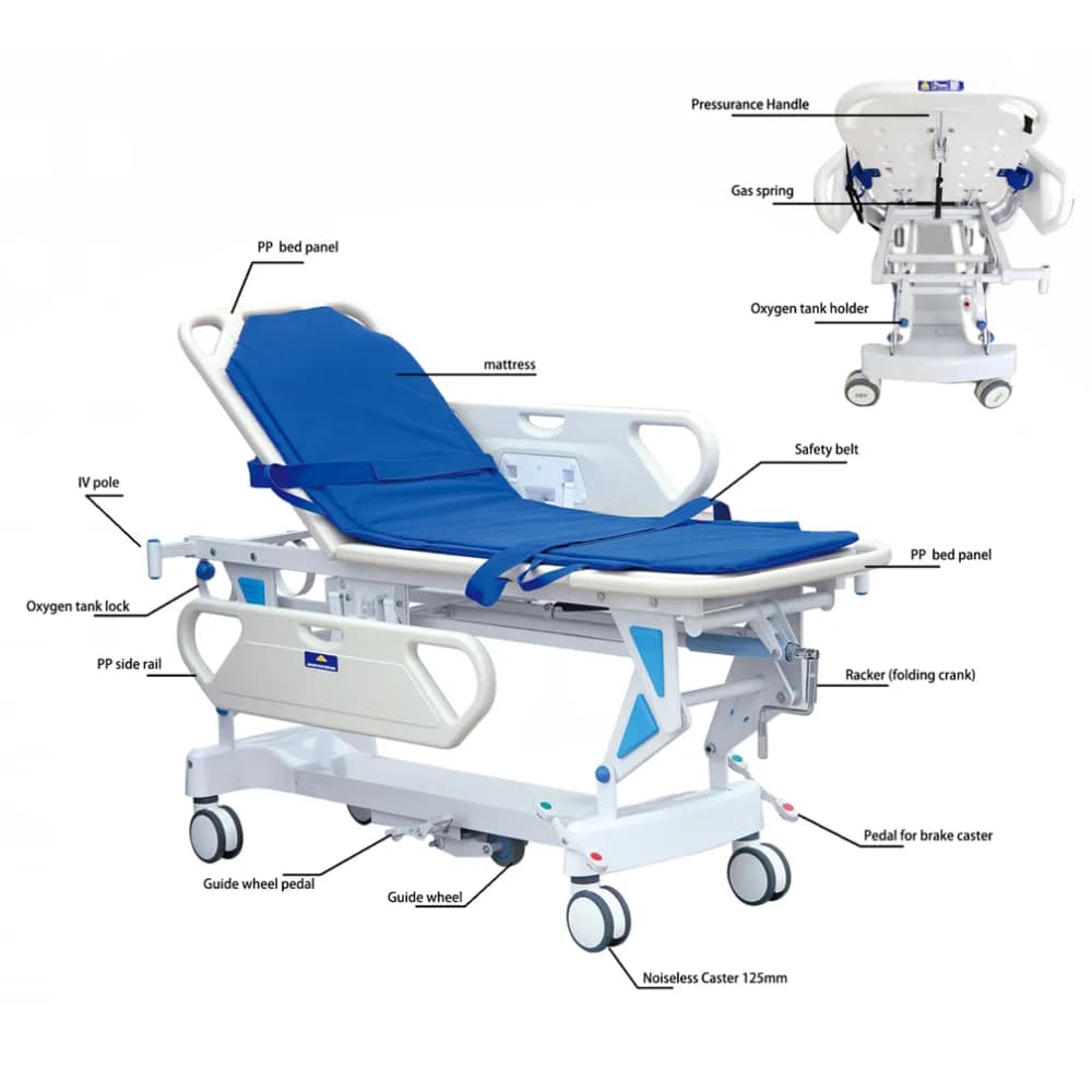 Medical Adjustable Medical Equipment Hospital Patient Bed Emergency Rescue Bed Transfer Bed