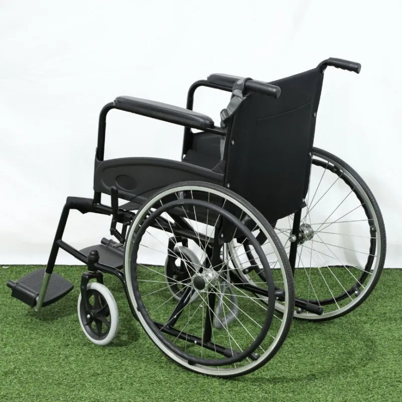 High Quality Medical Equipment Folding Manual Steel Rehabilitation Therapy Supplies Wheelchair With Handbrake for Sale